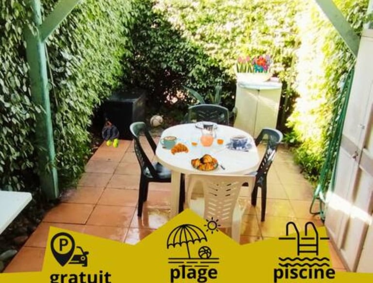 Villa avec Piscine Vivez l'expérience méditerranéenne dans notre villa au cœur d'une résidence paisible. 2 chambres (5 couchages) | Climatisation | WiFi | Plancha Terrasse privée avec transats pour des couchers de soleil magiques Piscine dans la résidence | Plage à 3 min |